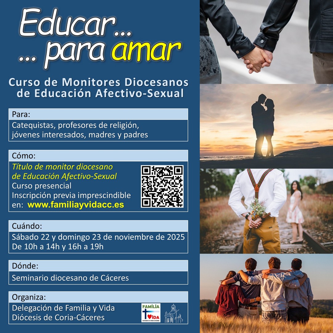 Este curso está destinado a formar a personas (catequistas, profesores de religión, jóvenes interesados, madres y padres) que quieran conocer y aplicar los materiales docentes que la Diócesis de Coria-Cáceres ha elaborado para impartir educación afectivo-sexual a los jóvenes, con el fin de ayudar a divulgar la belleza del amor y la sexualidad humana desde una antropología cristiana, con un lenguaje actual y adecuado a los desafíos educativos de nuestros jóvenes.