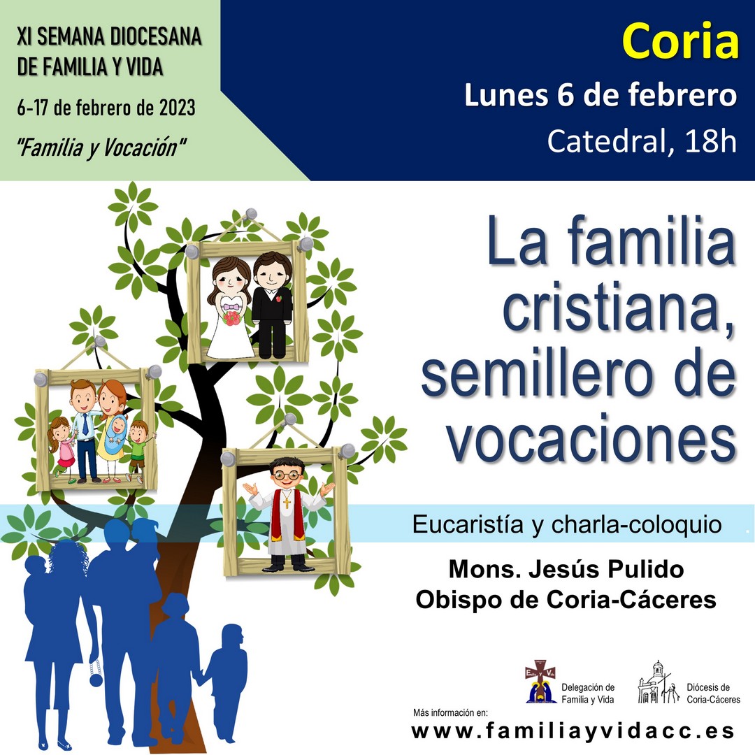 - Coria . Lunes 6 de febrero. Catedral, 18h. Jornada de apertura (eucaristía y conferencia). La familia cristiana, semillero de vocaciones. Mons. Jesús Pulido, Obispo de Coria-Cáceres.