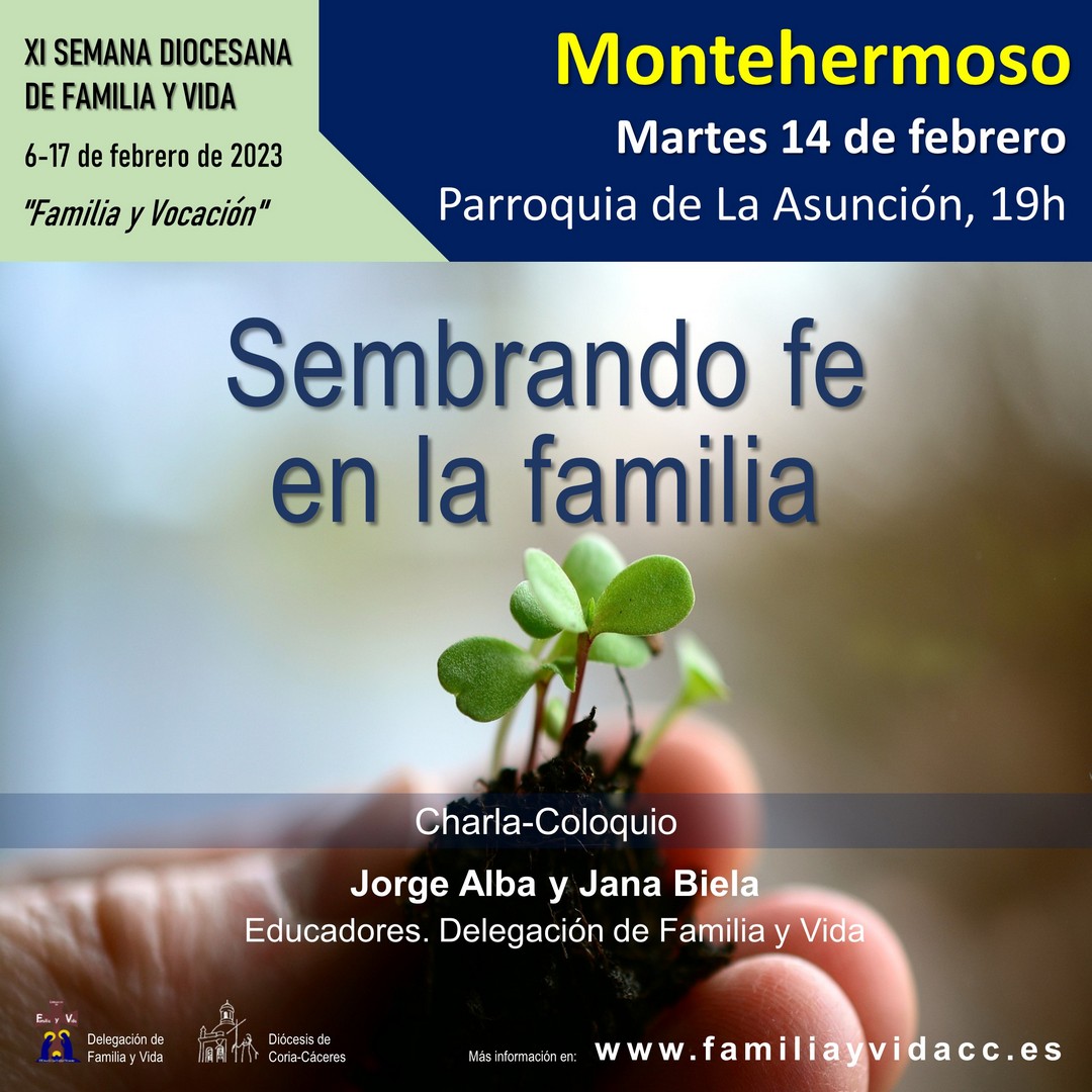 - Montehermoso . Martes 14 de febrero. Parroquia, 19h. Sembrando fe en la familia. Jorge Alba y Jana Biela, educadores.