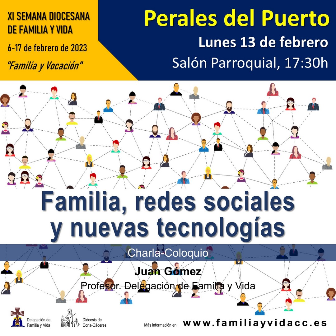- Perales del Puerto . Lunes 13 de febrero. Salón parroquial, 17:30h. Familia, redes sociales y nuevas tecnologías. Juan Gómez, profesor.